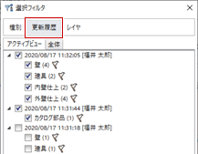 「更新履歴」をクリックすると、更新日時単位でデータを選択できます。