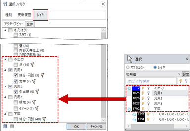 「レイヤ」をクリックすると、属するレイヤ単位でデータを選択できます。