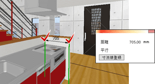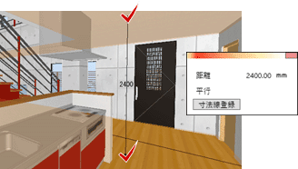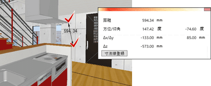 3Dビューで点間、線間、面間の距離を計測します。また、指定した点からのXYZ方向の距離を計測します。