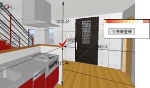 「計測」メニューから 「簡易(3D)」を選び、計測する点をクリックします。指定した点からのXYZ方向の距離が表示されます。 |