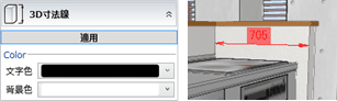 - 描画した寸法線の文字色と背景色は、配置後にプロパティで変更できます。
