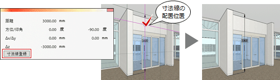 - 計測結果ウィンドウの「寸法線登録」をクリックします。
