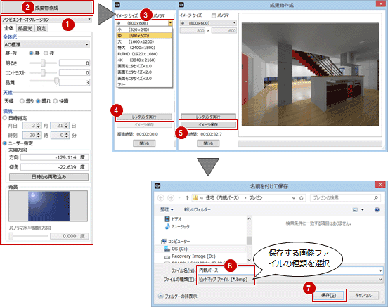 レンダリングの詳しい解説は、目的別マニュアル「レンダリング編」を参照してください。