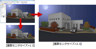 | 画面モニタサイズ×1.0 画面モニタサイズ×2.0 画面モニタサイズ×3.0 |