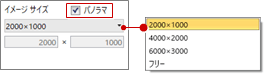 - 「パノラマ」がONのときは、「2000×1000」「4000×2000」「6000×3000」「フリー」から画像サイズを選びます。