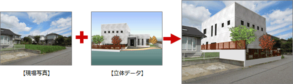 現場写真(BMP、JPG、PNG形式)を読み込んで、立体データと合成してレンダリングを実行します。