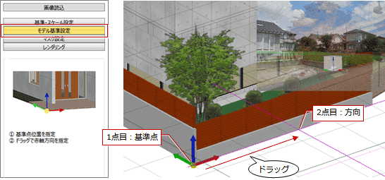 この操作で、背景写真にモデルの位置と方向を合わせることができます。