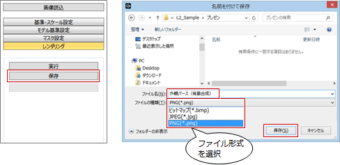 - ファイル名と種類を設定して、「保存」をクリックします。