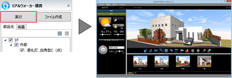 「リアルウォーカー連携」をクリックします。- 部品光や背景の設定を確認します。