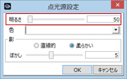 - 各光源の明るさは「設定」から開く「点光源設定」ダイアログで調整できます。点光源の設定のうち、リアルウォーカーのベイク処理で有効となるのは明るさのみです。
