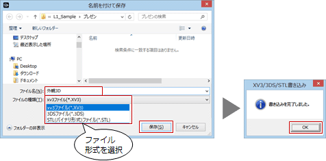 「XV3/3DS/STL」をクリックします。- 作成するファイルの名前を設定します。