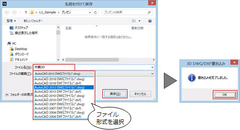 「3D DWG/DXF」をクリックします。- 作成するファイルの名前を設定します。