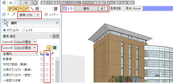 外部参照(全棟)、外部参照(区画)、参照階、ユニット - 「プレゼン」タブの