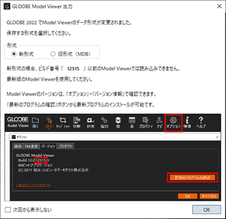 ※ 新形式で出力したデータを読み込むには、GLOOBE Model Viewerを最新版にする必要があります。