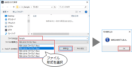 「FBX」をクリックします。- 作成するファイルの名前を設定します。