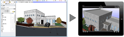 3Dビューの立体を、プレゼンデータ共有サービス「ARCHI Box」で閲覧できるデータファイルに出力します。