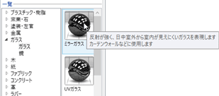 - カタログ素材は3DカタログマスタやArchi Masterに登録されている質感、ガラスは