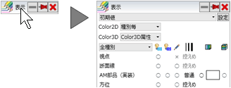 「シーン」をクリックします。- 「表示」バーのタイトル上にマウスポインタを移動すると表示パレットが開くので、表示したくないデータをOFFにします。