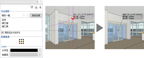 3Dビュー上のオブジェクトのプロパティ情報を参照し、引出線として描画します。