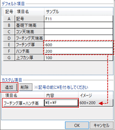 - デフォルト項目、文字列、定数、演算子(半角の+、-、*、/)などを使用して、項目の内容を入力します。