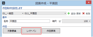 - 「図面作成」ダイアログの「レイヤ・ペン」をクリックします。