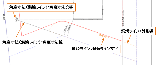 | 角度寸法(燃焼ライン) | 角度寸法線 | 角度寸法文字 | ||