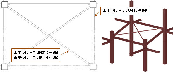 | 水平ブレース | 見付外形線 | 隠れ外形線 | 見上外形線 | 断面形状2D線 | |