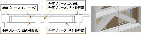 | 垂直ブレース | 見付外形線 | 断面外形線 | たれ線 | 見上外形線 | ハッチング |
