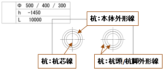 | 杭 | 本体外形線 | 杭頭/杭脚外形線 | 杭芯線 | ||