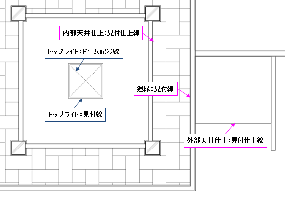 | 内壁仕上 | 見付仕上線 | 断面仕上線 | 断面下地線 | 隠れ仕上線 | 見上仕上線 | ハッチング |