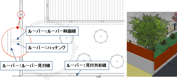 | ルーバー | 見付外形線 | 隠れ外形線 | ルーバー見付線 | ルーバー断面線 | ハッチング |