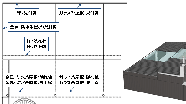 | ガラス系屋根 | 見付線 | 隠れ線 | 見上線 | ||