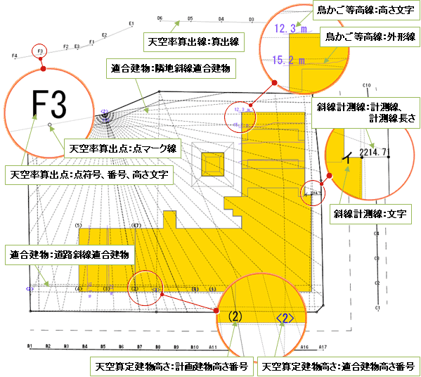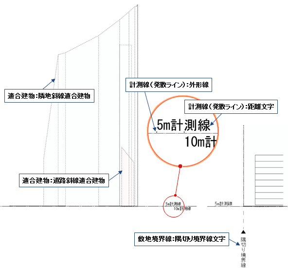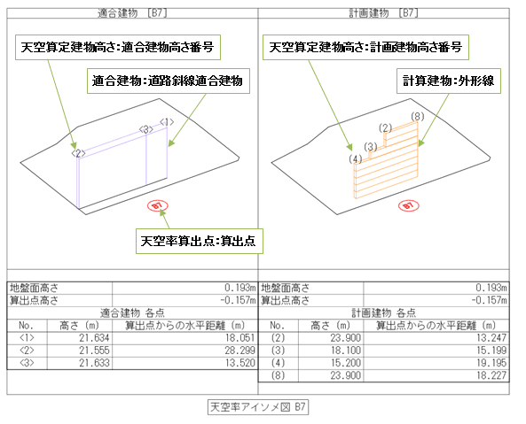 | 天空率算出点 | 点マーク線 | 点符号、番号、高さ文字 | 算出点 | |
