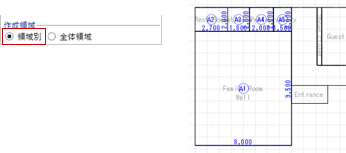なお、「作成領域」が「領域別」の場合は、指定した領域内の各スペースに床面積区画が入力されます。