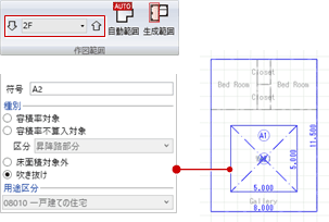 「領域面積区画」を選びます。 - 対象階を確認します。