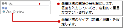 - 領域面積区画の種別には、「プラス」「マイナス」があります。