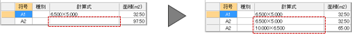 長辺優先 多角円形領域の最大矩形の長辺方向で最も長い辺を基準にして分割します。 縦優先 縦方向を基準にして分割します。 横優先 方向を基準にして分割します。 最長辺優先 最も長い辺を基準にして分割します。 最短辺優先 最も短い辺を基準にして分割します。 - 面積計算表を再作成すると、計算式が表示されるようになります。