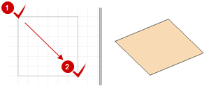 - 3Dビューでは、既存の面を検索して入力点をクリックできます。既存の面上に面を描くと、既存の面が分割されます。