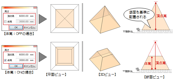 - 頂点高と体高を設定して、「OK」をクリックします。