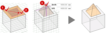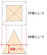 の操作については、「入力モード」を参照) - 「配置高」で錐体を配置する高さを設定します。
