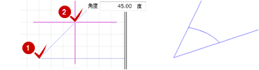- 入力モードを選択して、回転軸と断面形状の配置位置をクリックします。