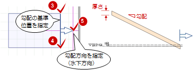 - 傾斜がある場合、続けて、勾配に関する操作を行います。