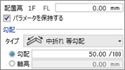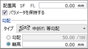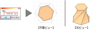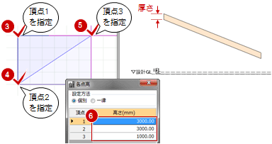 の操作については、「入力モード」を参照) - 「配置高」で傾斜体を配置する高さ、「厚さ」で傾斜体の厚みを設定します。