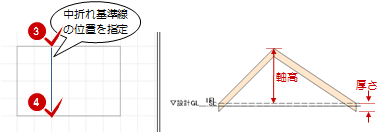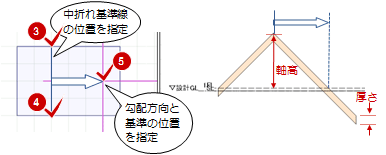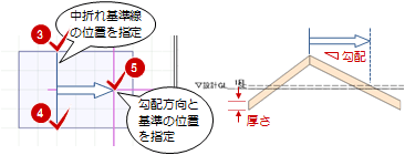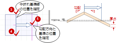タイプ 操作 片流れの勾配と基準位置を指定する場合