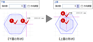 の操作については、「入力モード」を参照) - 下面の頂点数を設定して、下面の形状を描きます。