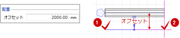 - 「オフセット」を入力することで、クリックした位置から設定値の分、ずらして配置できます。