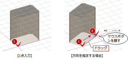 方向を指定する場合は、配置位置でマウスをドラッグしながら方向を決めます。