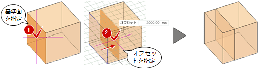 「参照面オフセット」であることを確認します。 - 「処理」で、分割線を入れるのか切り取るのかを設定します。