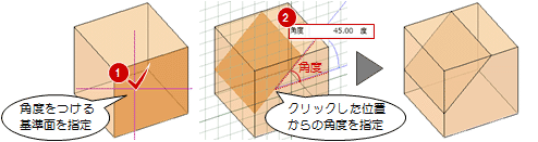 「基準点・角度」を使用すると、面指定でクリックした位置を原点として角度を設定できます。