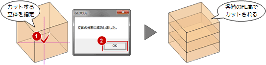 「全階FL分割」をクリックします。 - カットするモデルをクリックします。
